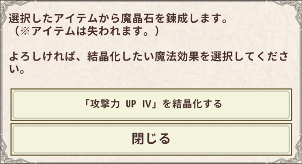 2. あとアイテム一つで魔晶石が完成する場合、魔法効果が+1のアイテムも消費されます。